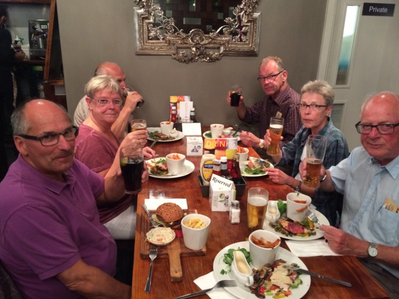 Om aftenen gik vi ind på restauranten, der lå lige ved siden af hotellet. Maden var ikke noget at skrive hjem om, men øllet var koldt, og vi hyggede os!