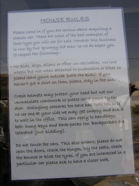 På vej hen mod Beaulieu slottet og museet kom vi forbi denne “butik” med klassiske biler. Vi turde ikke gå ind, tænk, hvis man kom til at gøre eller sige noget, som de to indehavere “Grumpy old men” ikke brød sig om, UHA! – men det så nu ud, som om de havde masser af humoristisk sans ;o)
